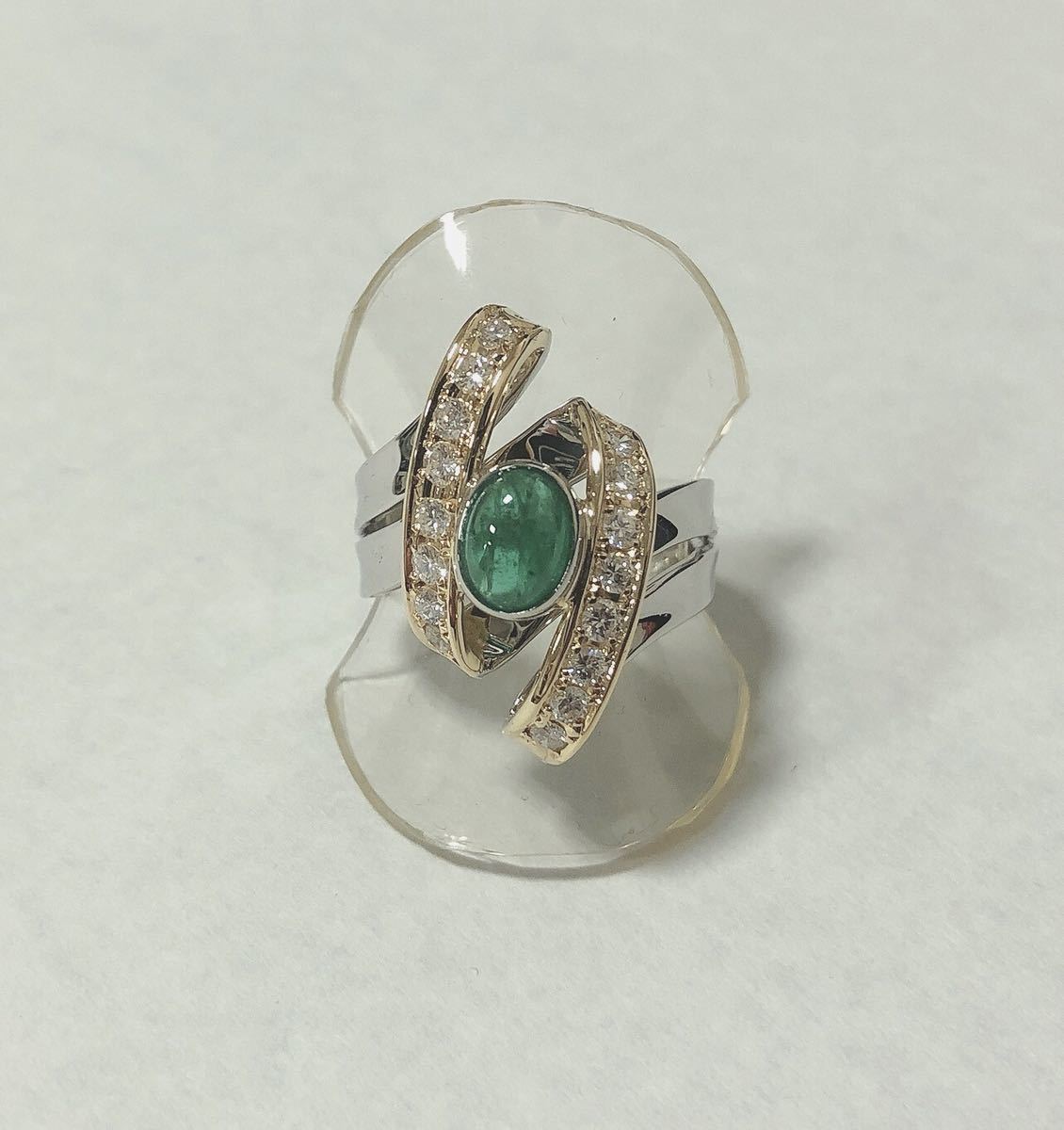 - 【質屋 尾張屋商店 東京】 ☆鑑別結果付☆ Pt900K18 プラチナイエローゴールド エメラルドダイヤモンドレディースリング