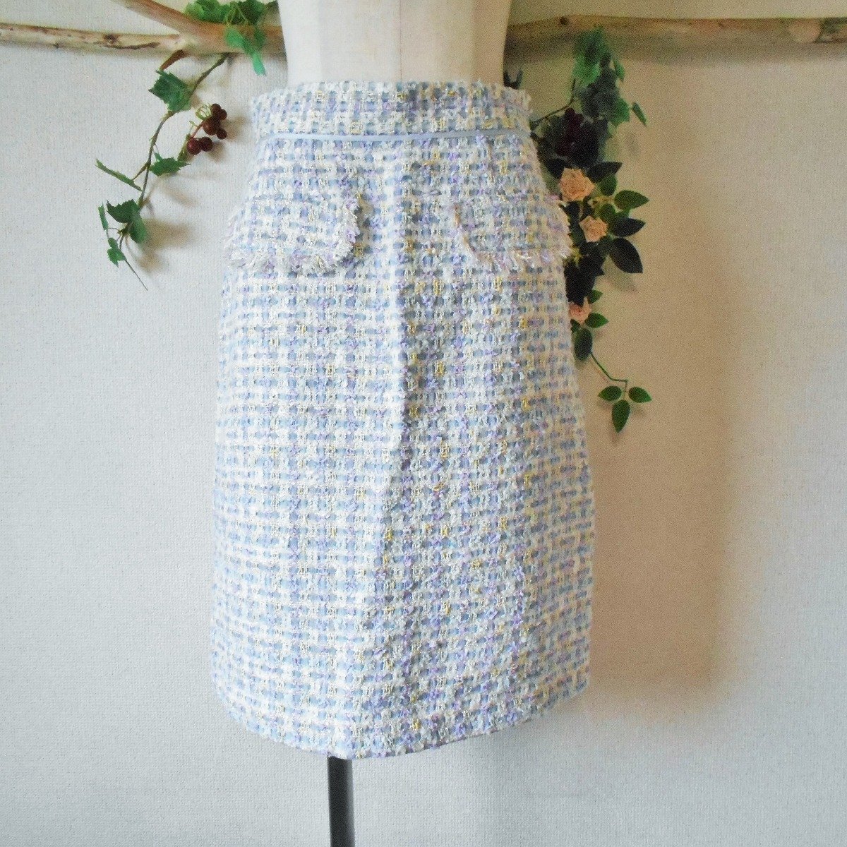 > 美品 デビュードフィオレ Debut de Fiore 春 夏 ツイード 風 スカート 日本製 38