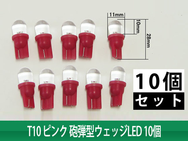 - ◆セール◆【特】激安!! T10 砲弾型 ウェッジLED ピンク 10個