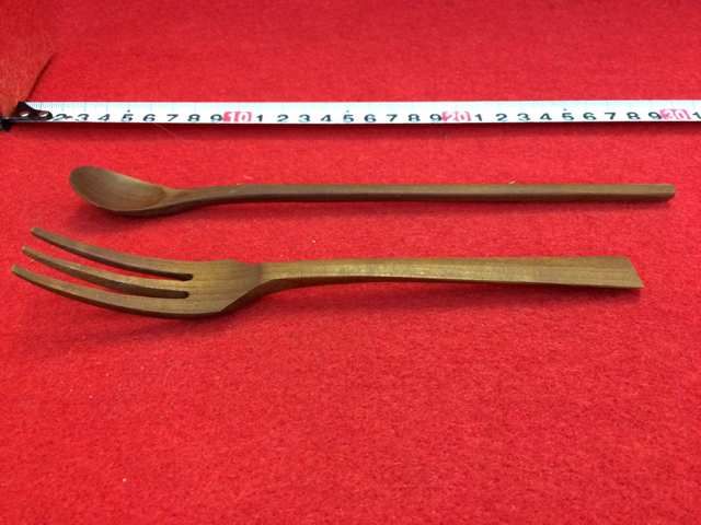 - 昭和レトロ_手作り/木製/フォーク&スプーン_0049