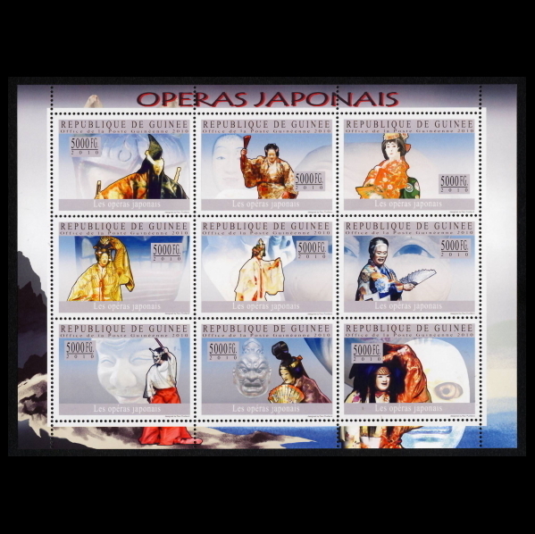 - ■ギニア切手 2010年 日本のオペラ 能 / 猿楽 9種シート