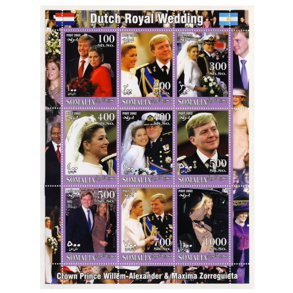 - ■ソマリア切手 2002年 ウィレム・アレクサンダー国王 / マクシマ王妃 御成婚記念 9種シート