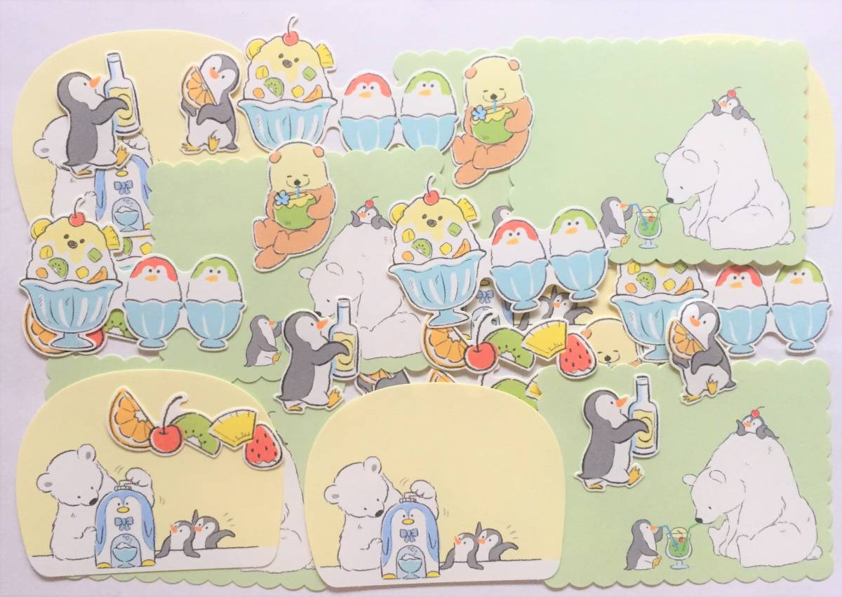 - 新品&即決 かわいい フレークシール 7種35枚/動物 白熊 ペンギン ラッコ/かき氷 フルーツ/夏 サマー/スクラップブッキング 手帳 手紙/男女