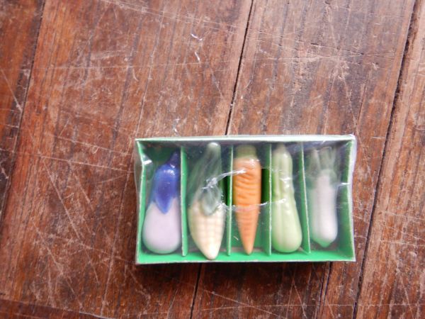 - 陶製 野菜セット A 6X1.5X1.5CM位 箱入り 箸置き 未使用