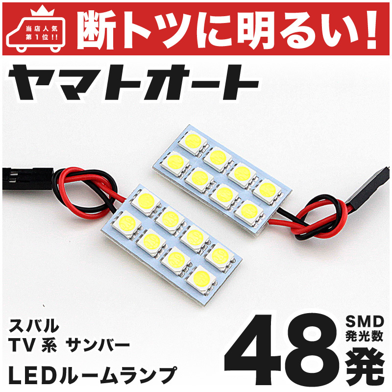 > ◆サンバー TV系 スバル 【断トツ48発!!】 LED ルームランプ 2点セット パーツ スバル 車中泊 基板タイプ 3chip SMD 室内灯 アクセサリー