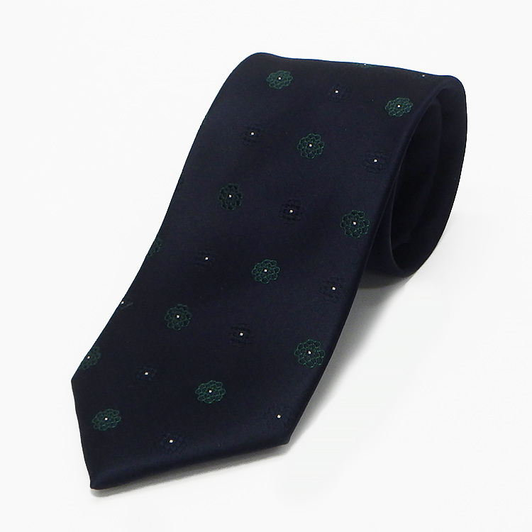 - 究極の西陣織 オールシルクネクタイ 濃紺×緑/花小紋 抜群の締め心地 メール便送料無料 NJ-SLK03-GN