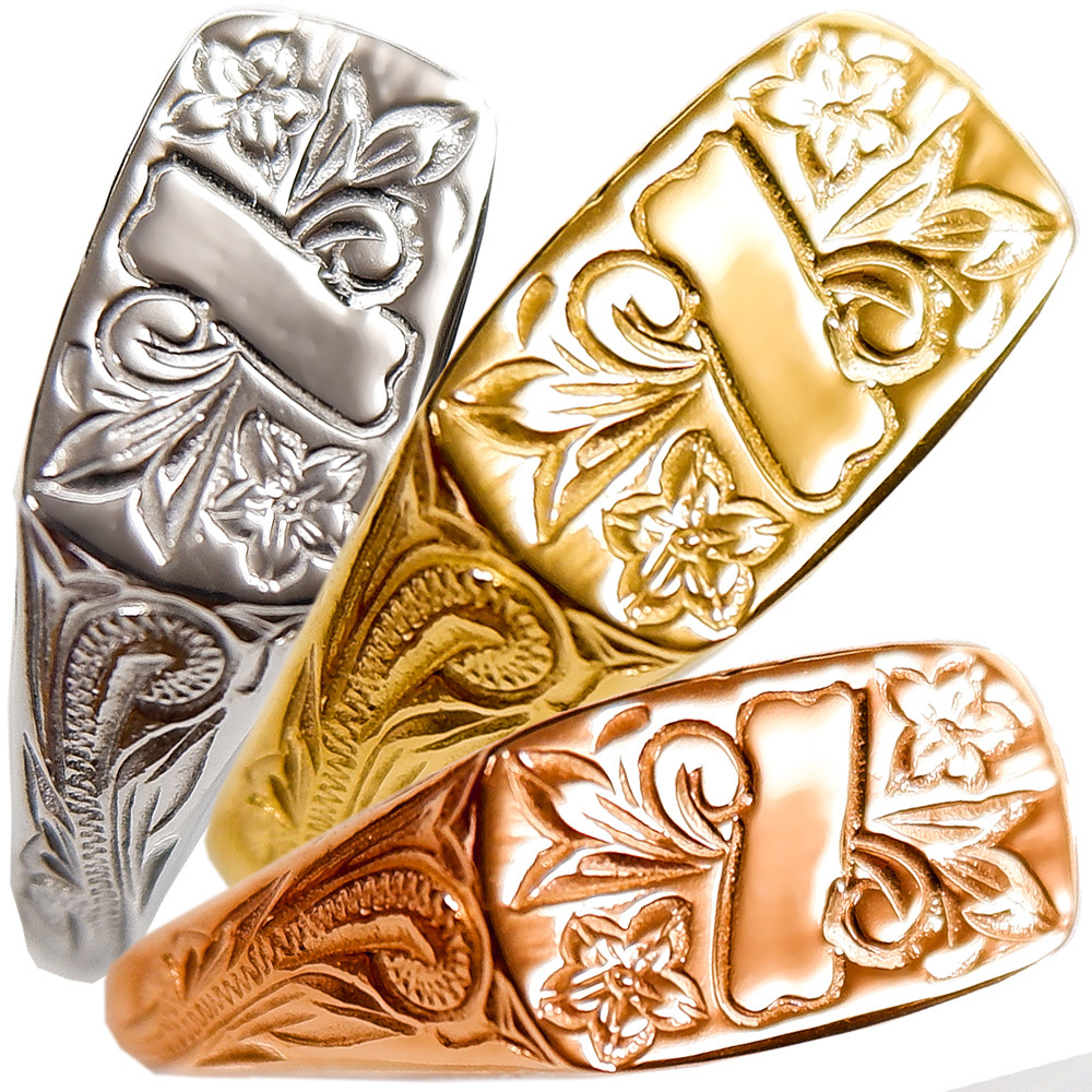 > ★インスタ映え★お勧め★ハワイアンジュエリー★アレルギー&温泉&海水浴ご使用OK★ステンレス印台リング★ゴールド&ピンクGD&シルバー