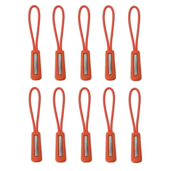 - ジッパープル 反射材付き ジッパータブ ファスナー チャック 取り付け簡単 つかみやすい ノンスリップ プルコード 10本セット(オレンジ)