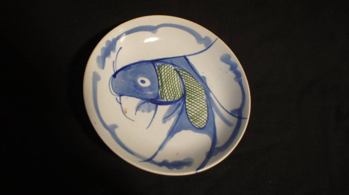 > レア 書かれた魚が生きている 中国南方窯 魚図 中皿 割れカゲなし 民窯の力強さ