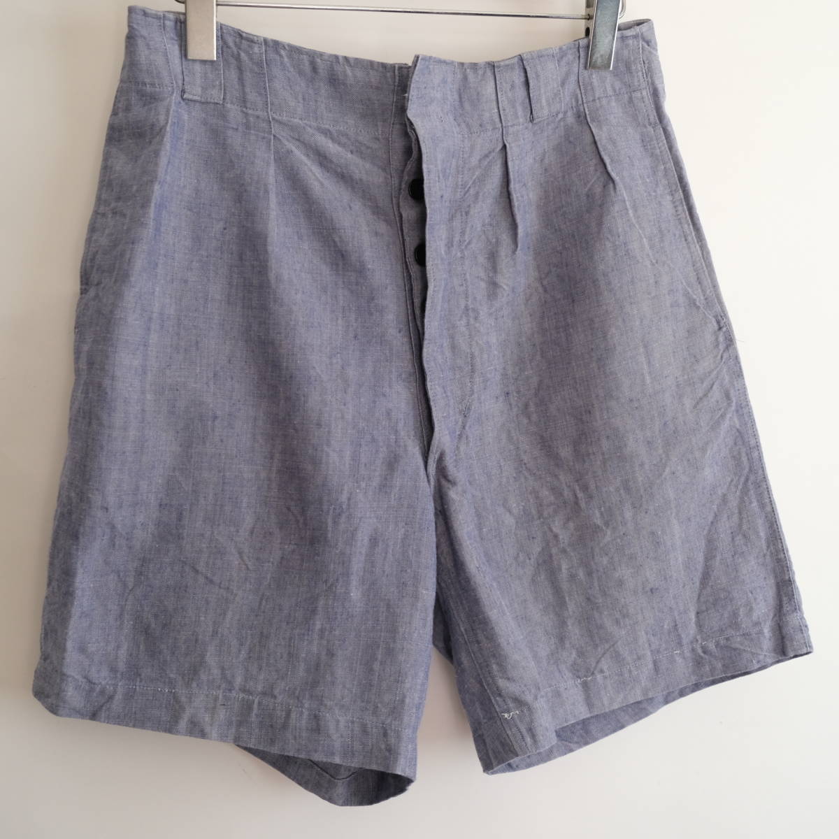 > 50s【 フランス軍 ビンテージ 】リネン ショートパンツ / ブルーパープル系 / ヨーロッパ ミリタリー ワーク ショーツ マリン 麻