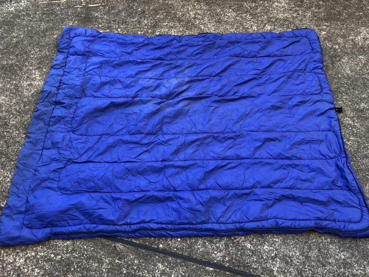 > 寝袋 シュラフ 封筒型 スリーピングバッグ アウトドア キャンプ レジャーに 防災用 車中泊 丸洗い可能 約190×60 青 夏休み 中古