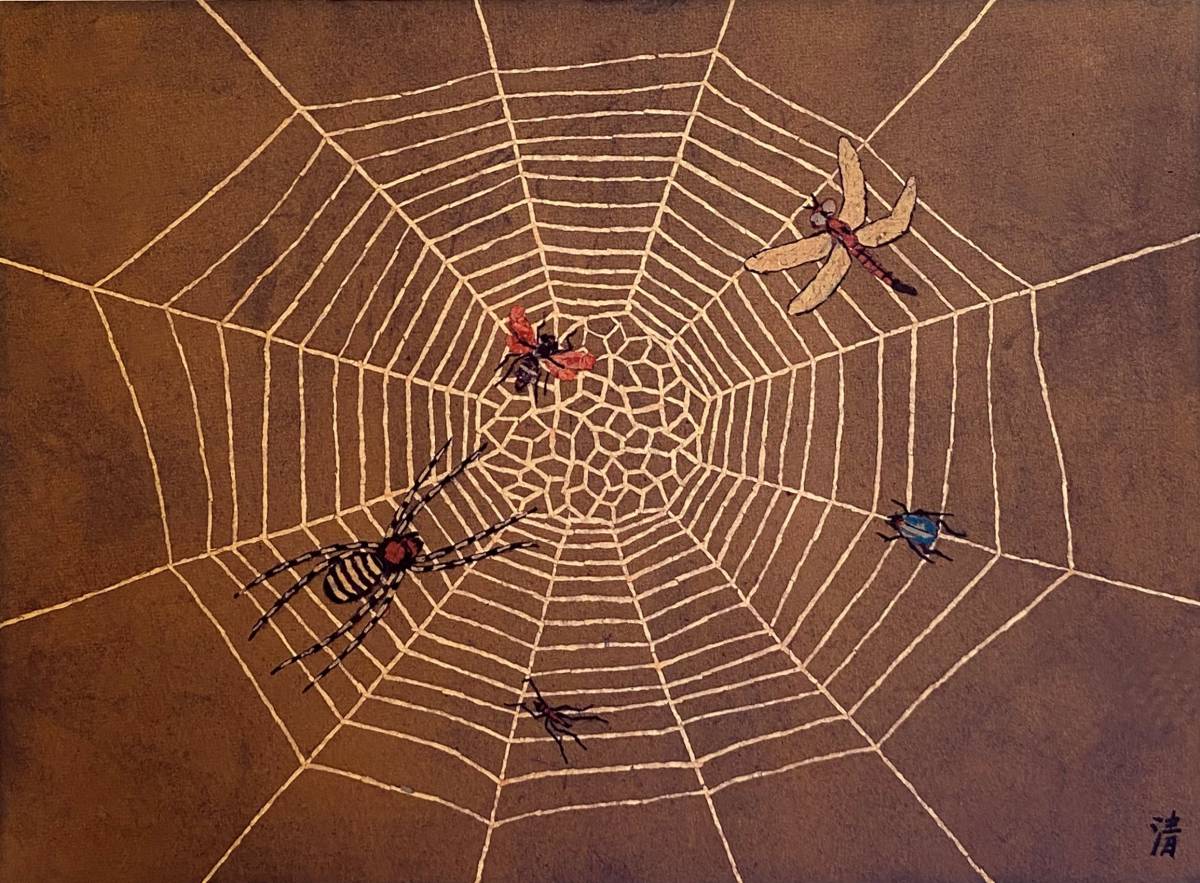 - 山下清、〈蜘蛛の巣に虫たち〉、希少画集画、高級新品額・額装付、状態良好、送料無料