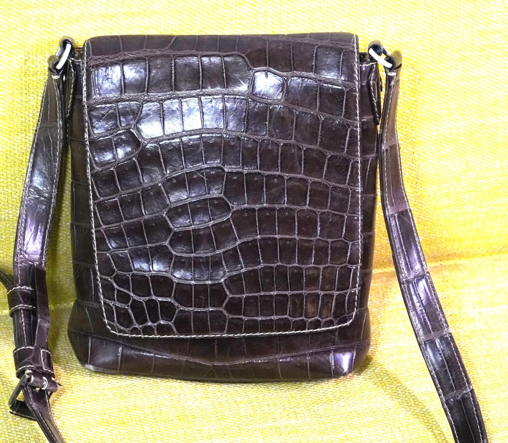 - マット クロコダイルショルダーバッグ メンズ 斜め掛け フラップマグネット留め クロコ ワニ 希少 最高級