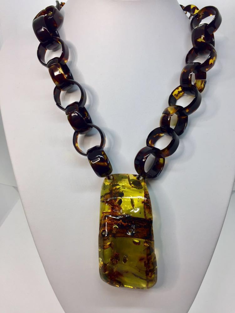 - 【新品】べっ甲×琥珀ネックレス*大振り*一点もの*国内最大級*ばらふ*ネジリ*天然こはく*天然べっ甲*コパル*鑑別書付き*天然石