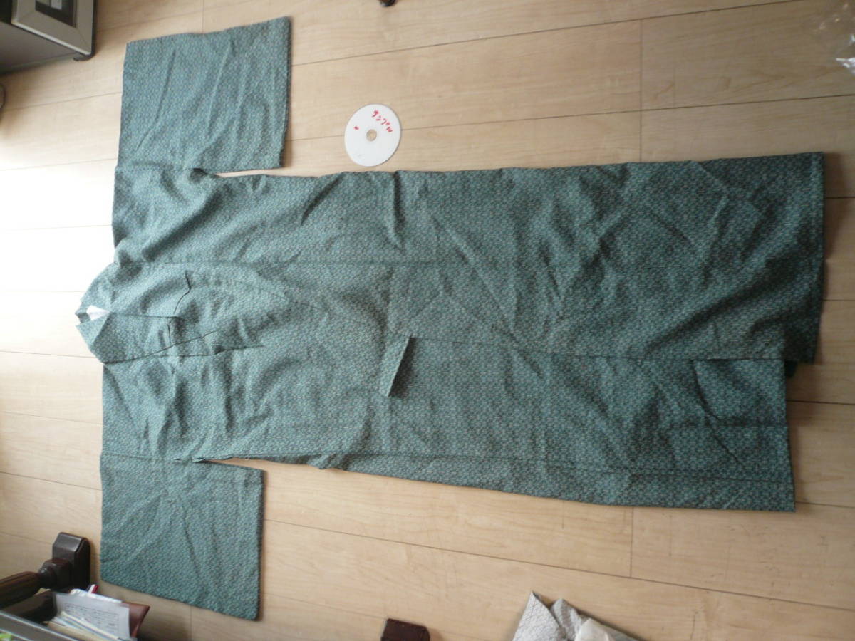> D即決 KIMONO 着物 小紋 模様 青萌黄 ウール? 和柄古典 レトロ クラシック 着物 和装 送料600円~