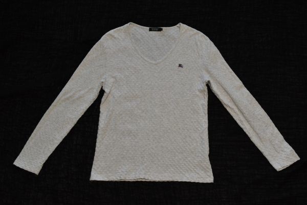 - ★バーバリーブラックレーベル★上品なグレー ワッフルデザイン柄Vネック長袖カットソー・ロンT ●2(M)