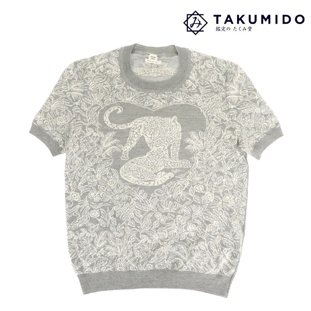 - 新品 エルメス HERMES 半袖ニット ジャングル ラブ レディース サイズ38 グレー 257936
