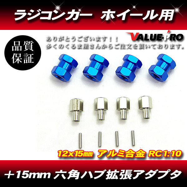 > RC ラジコン スペーサー 15mm ワイド ハブ径 12mm アキシャル タミヤ 緩みにくい 青 ブルー BLUE