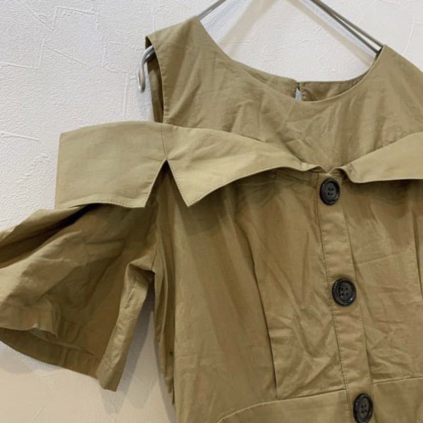 - 美品 グランターブル トレンチコート風 ワンピ オフショルダー ノースリーブブラウス ワンピース お洒落 日本製