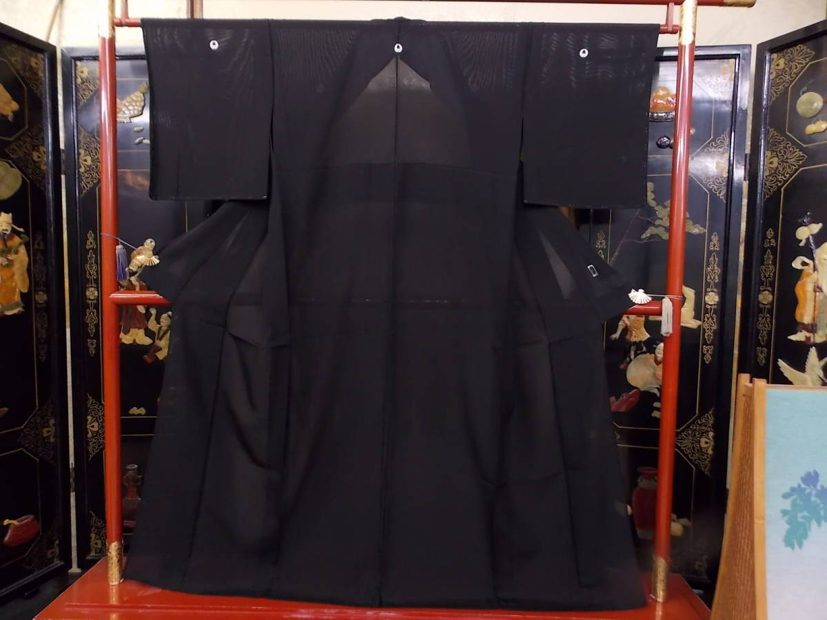 > きもの今昔3835〈黒の礼装〉 夏用喪服 正絹駒絽広衿手縫い仕立て 躾け付き未使用品