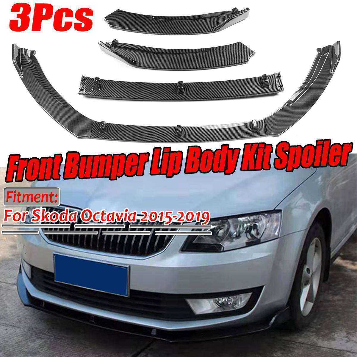 > 新しいカーボンファイバールック/黒の車のフロントバンパースポイラーディフューザープロテクターガード用シュコダオクタ 2015-2019