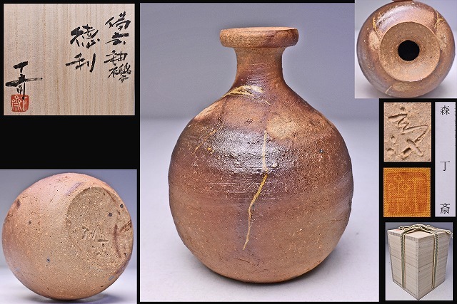 - 森丁斎 ★ 備前 釉襷 徳利 ★ 共箱 共布 栞 ★ 父: 森風来 ★ 氏独特の釉襷の景色ば良い逸品 ★ 酒器 ★ 備前六姓 森家 系譜 ★
