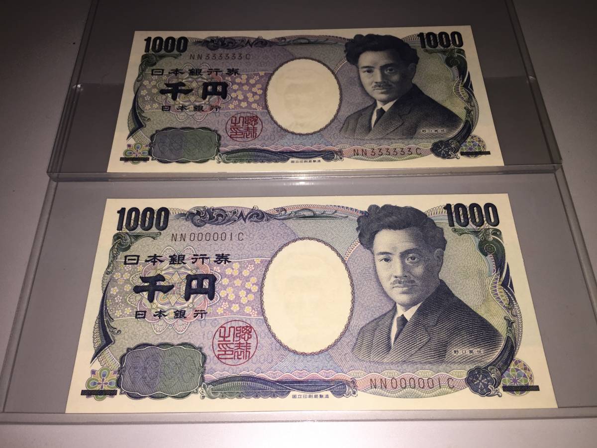 - 【同アルファベット NN-C/注目/珍品/レア/希少/貴重】野口英世1000円札 3のゾロ目 1番