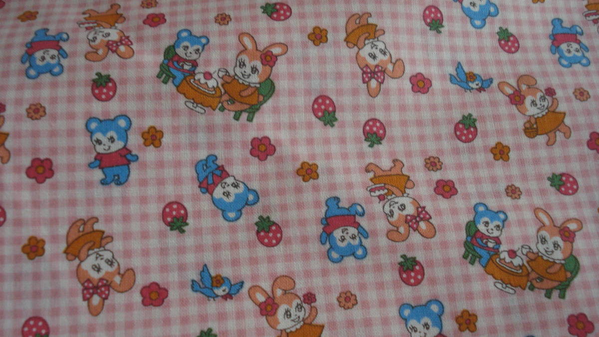 - ◆「レトロアニマル・チェック」(ピンク)約50㎝×約50㎝/・レトロアニマル・メルヘン◆くまちゃん・うさぎちゃん