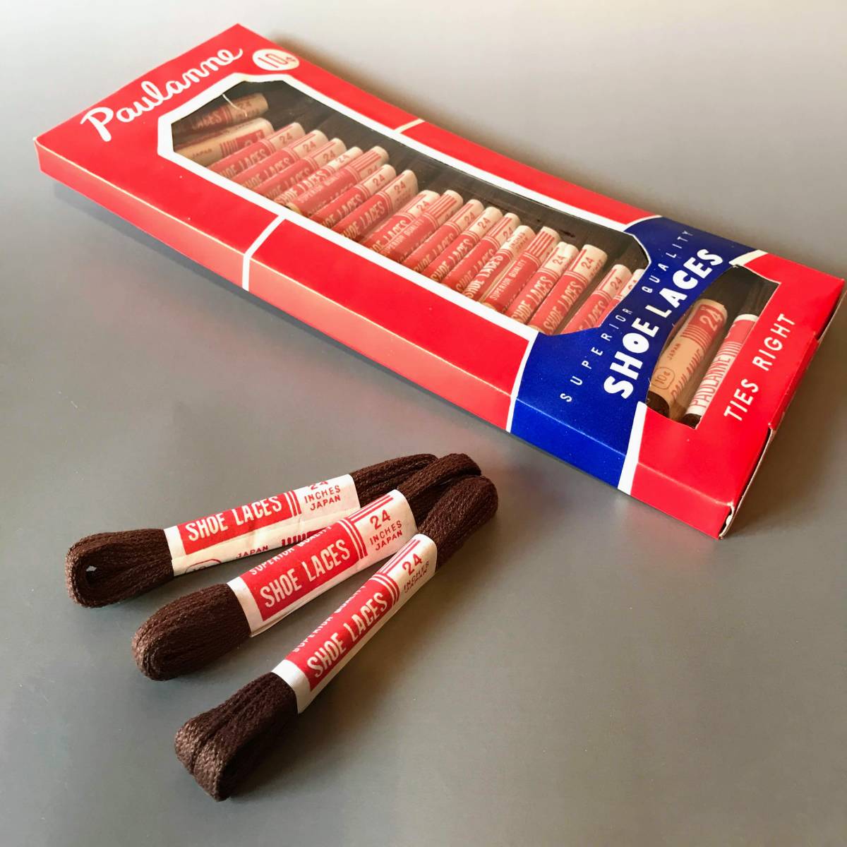 - ★送料無料★デッドストック★24本セット割安!ビンテージ シューレース 24インチ 60cm 茶 平紐 靴ひも 靴紐 ブーツ シューズ スニーカー