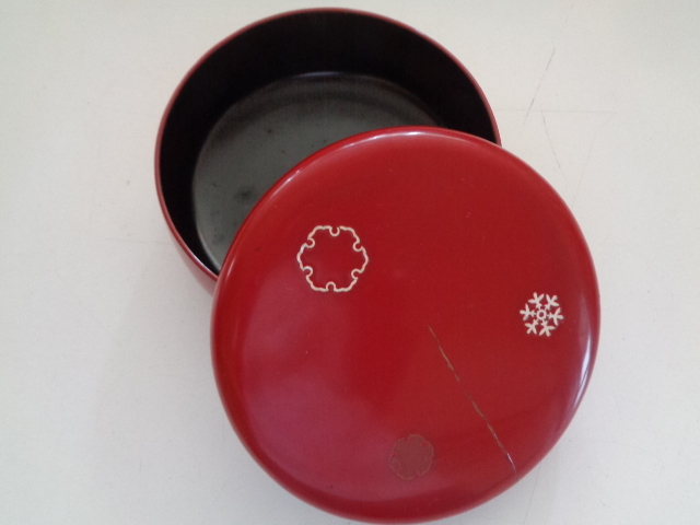 - D141-60 漆塗朱菓子鉢 象嵌 朱 菓子器 菓子器 茶道具 18センチ×6.5センチ