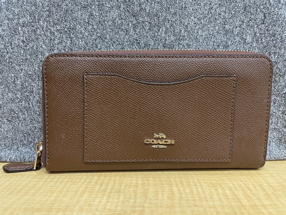 > 美品COACHコーチF54007クロスグレインレザーACCORDION ZIP WALLET長財布★茶ブラウン★B2193
