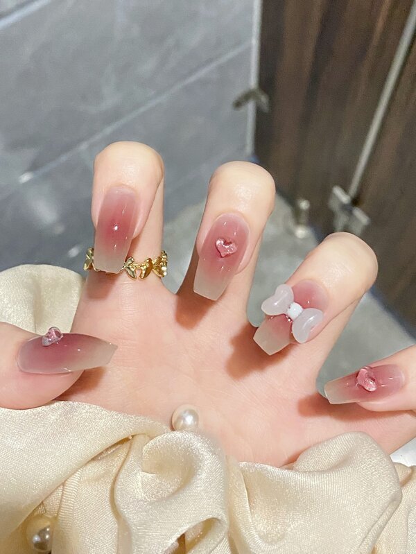 - レディース ドレス 24ピース ハートデコレーション テープ1枚、爪やすり1本 ネイルチップ
