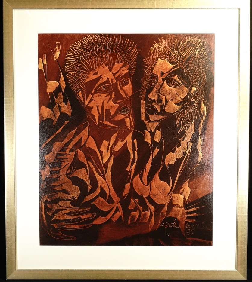 - 素晴らしい感性!1991年 イタリアアーティスト Jean-Marie Gerola作 油彩 人物画 抽象画 12号 額装品 絵画 アート 幅67.5㎝ 高さ78㎝ YKT
