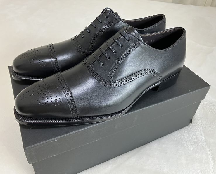 - 未使用品 BARNEYS NEW YORK セミブローグシューズ レザー ブラックメダリオン サイズ25CM