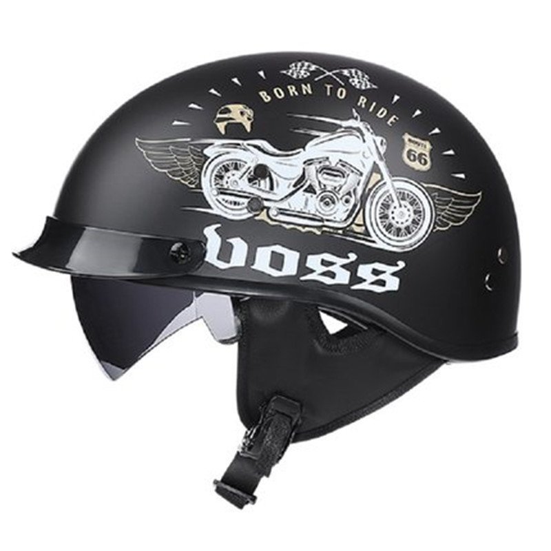 - TZX359★オートバイハーフヘルメット内蔵サングラス半キャップ ヘルメットバイクヘルメットM-XXLサイズ選択可能11色