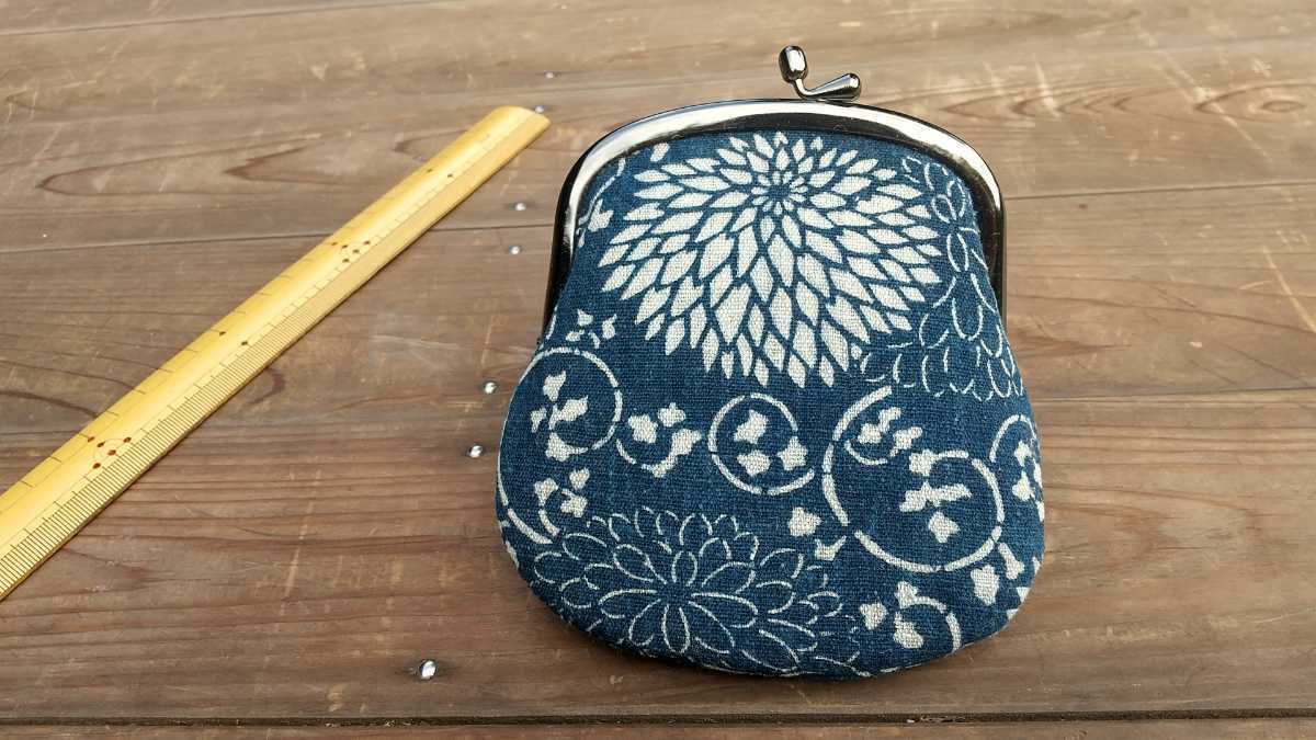 - 菊唐草型染 古布リメイク がま口小銭入れ