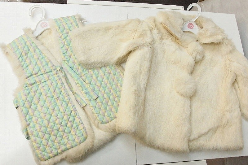- ベビー服 毛皮コート/ベスト 2点セット 90cm アイボリー/マルチカラー