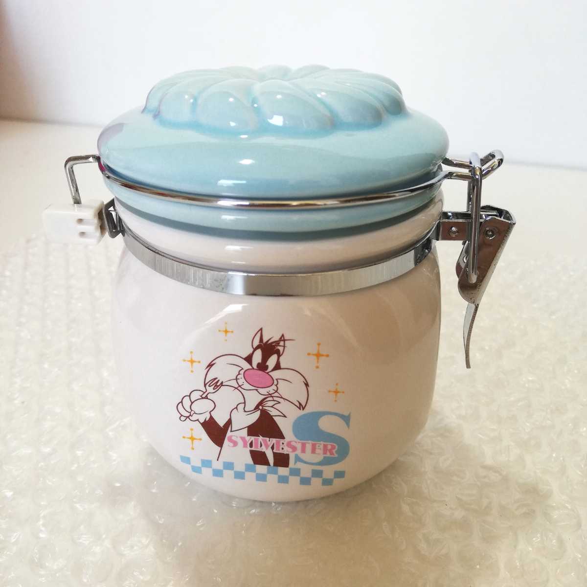 - シルベスター・キャット ミスタードーナツ 非売品 陶器製 キャニスター 10.5cm 未使用品 [容器 収納 ゴムパッキン 密閉 キャンディポット]