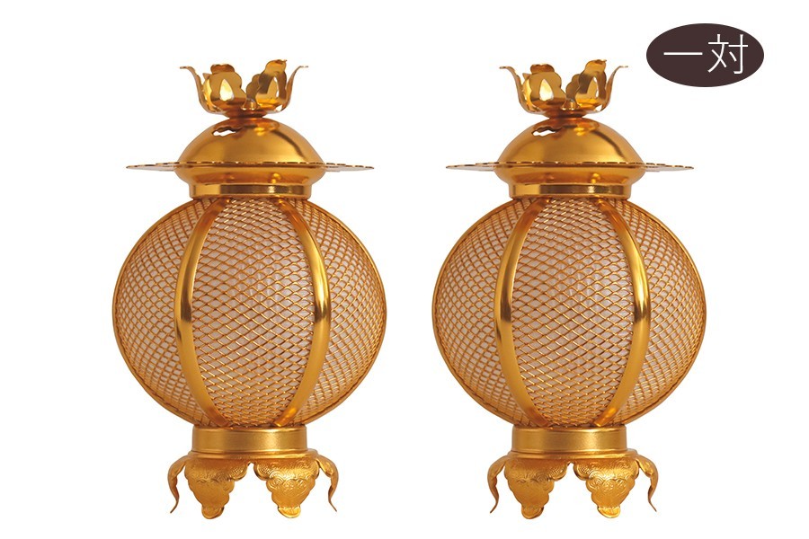 - 灯ろう 照明 仏壇 吊り 燈篭 本丸 ■ 小 ■ アルミ 金色 仏具 一対