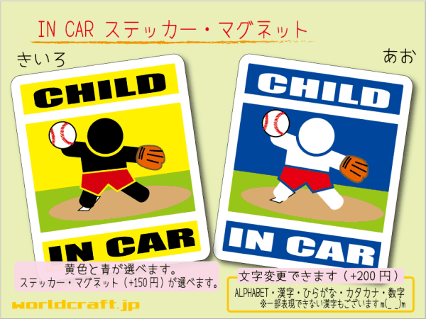 - ■CHILD IN CARステッカー野球ピッチャー 1枚販売■車に カラー、ステッカー/マグネット選択可能☆オリジナル シール 磁石 かわいい