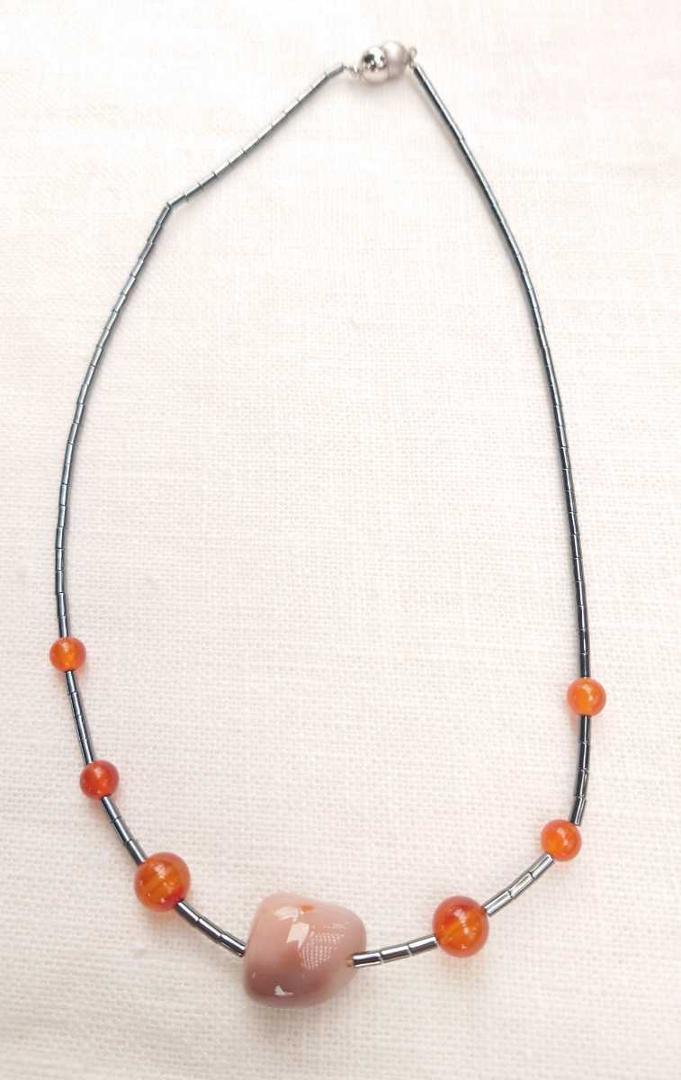 - ネックレス 天然石 メノウ ヘマタイト 原石 パワーストーン オリジナル マグネット式 送料無料