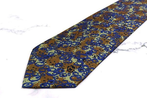 - 498円~ミラショーン 総柄 ワンポイントロゴ イタリア製 ブランド ネクタイ メンズ ブラウン ブルー 良品