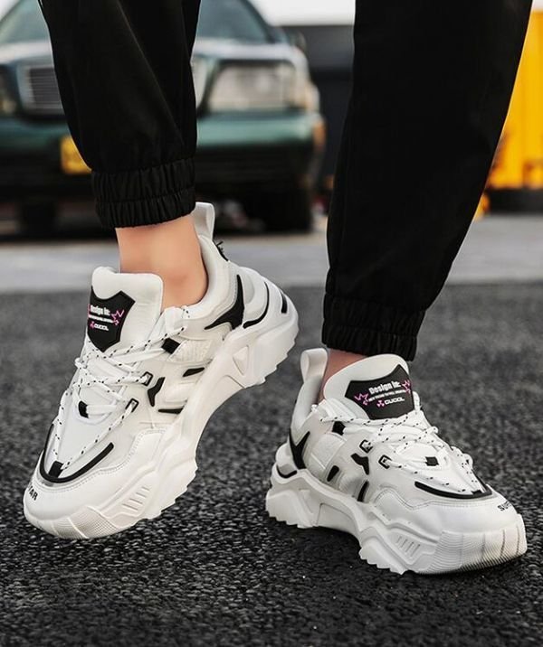 - cjx728★スニーカー メンズ シューズ 切替 厚底 個性 ウォーキングシューズ カッコイイ ヒップホップ カジュアル 快適 24.5cm~27cm選択白