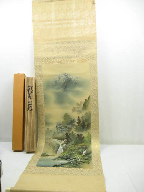 - 川島美宝 彩色山水 掛軸 掛け軸 一五巾立 53×188cm
