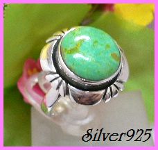 - シルバー925銀の天然石グリーンターコイズ付ピンキーリング/5号.6号より