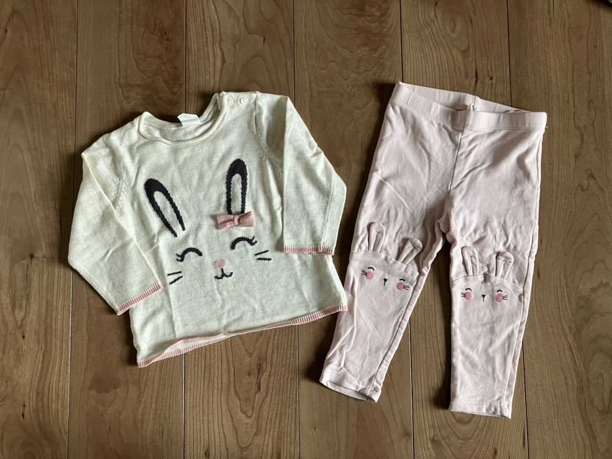 - H&M 女の子 ベビー うさぎ 薄手ニット 裏起毛レギンス セット 80センチ