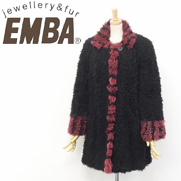 - ◆EMBA エンバ ラムファー 毛皮 デザインカラー コート ブラック×ワインレッド 11