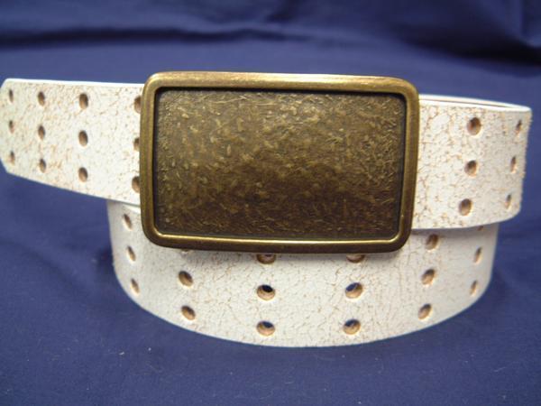 - 【ベルト館】3連ホール クラック加工レザーベルト 白 ☆即決