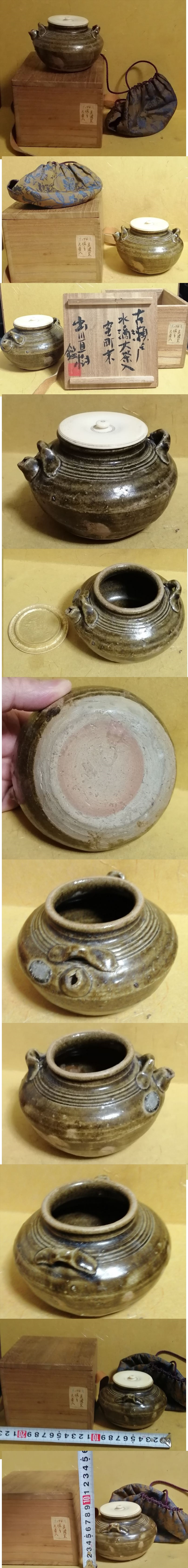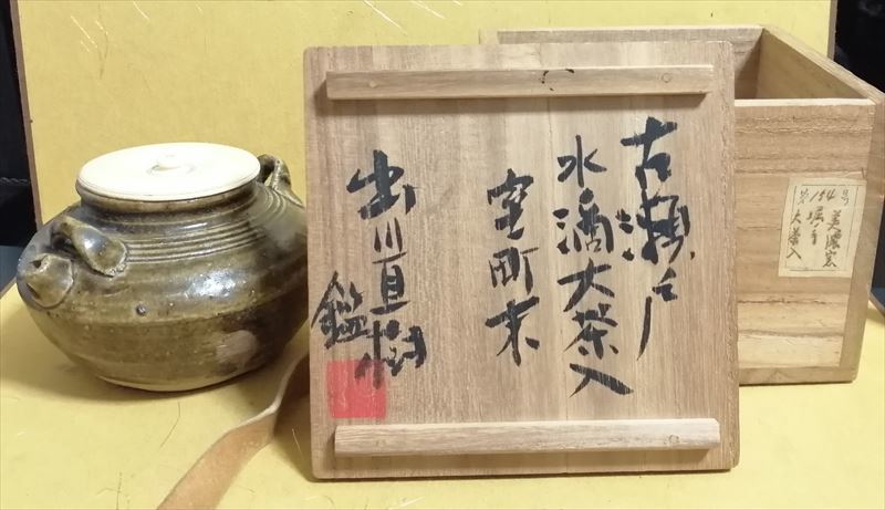 - 室町時代(1336〜1568年)後期 瀬戸 古瀬戸 水滴 茶入 出川直樹鑑定箱 袋 古裂