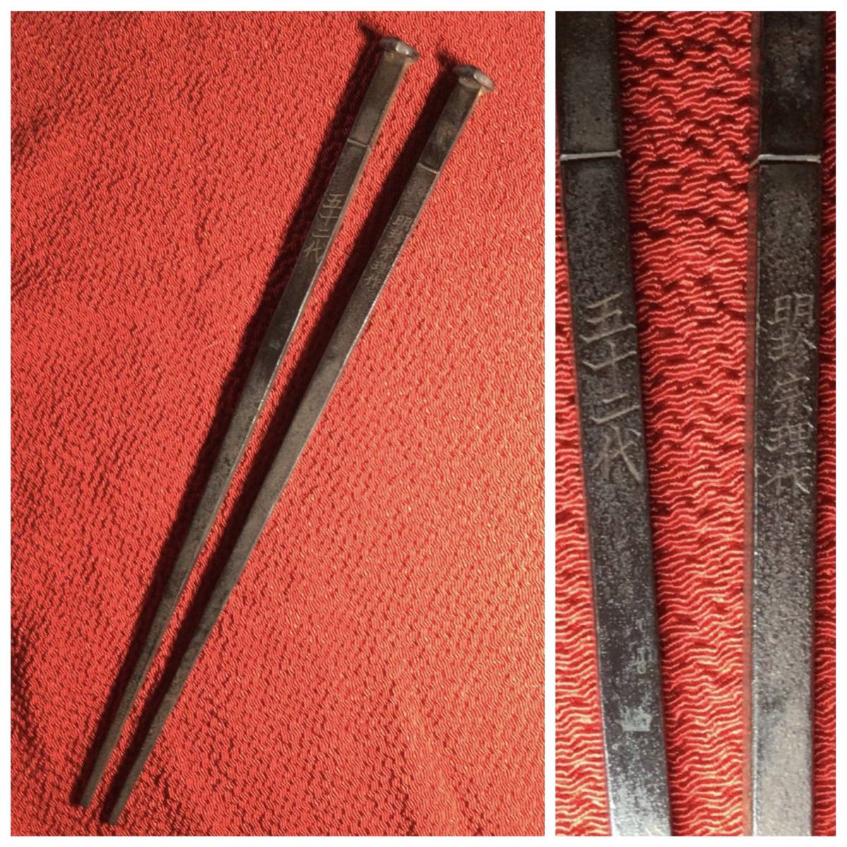 - 旧家の初だし 五十二代明珍宗理作 火箸 香火箸 茶道具 時代道具 香道具 長火鉢